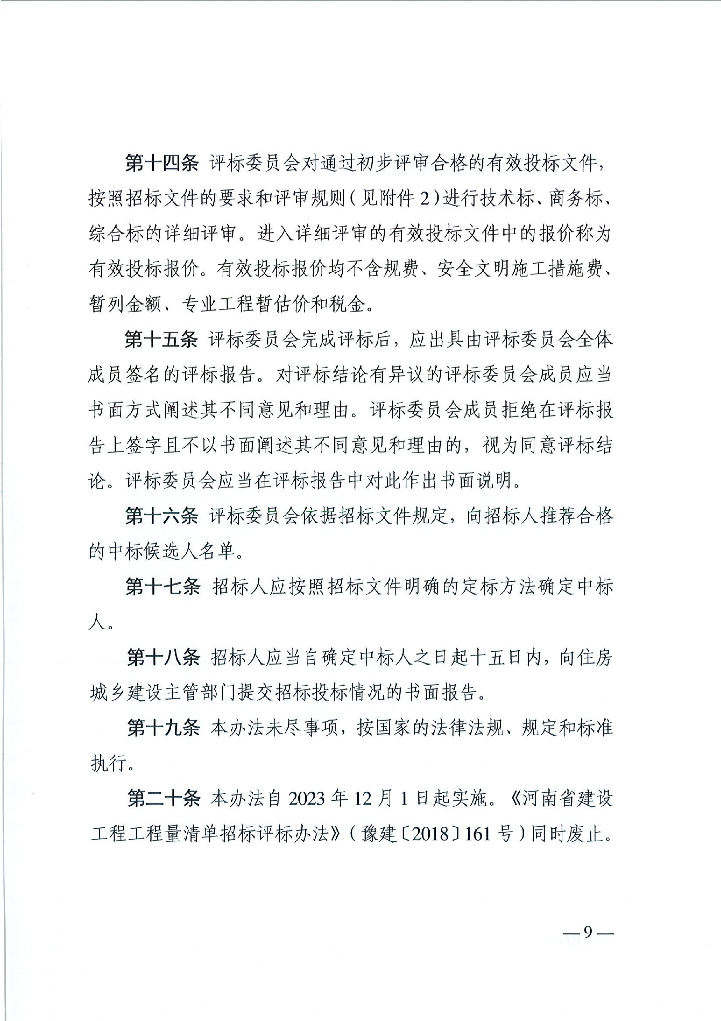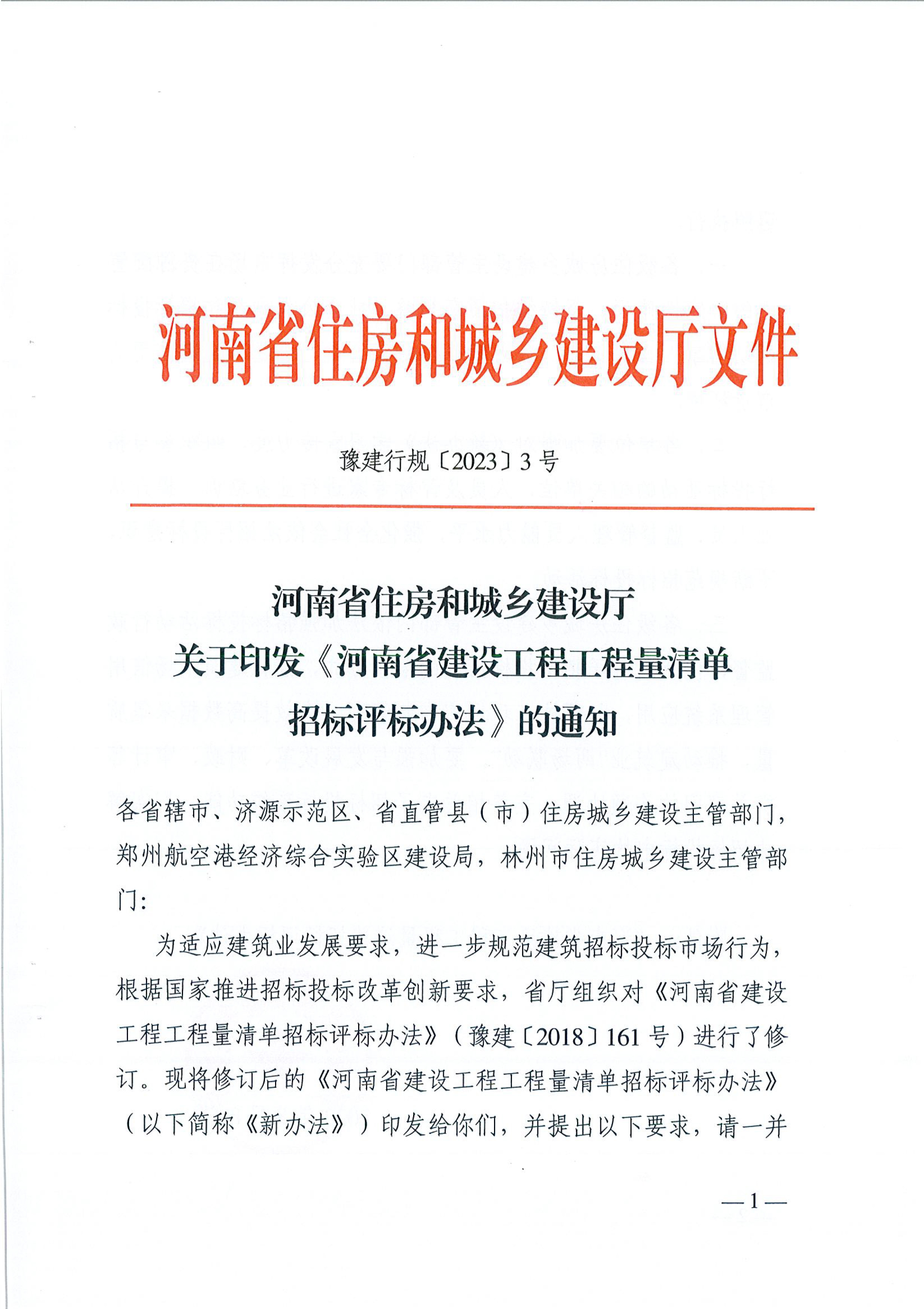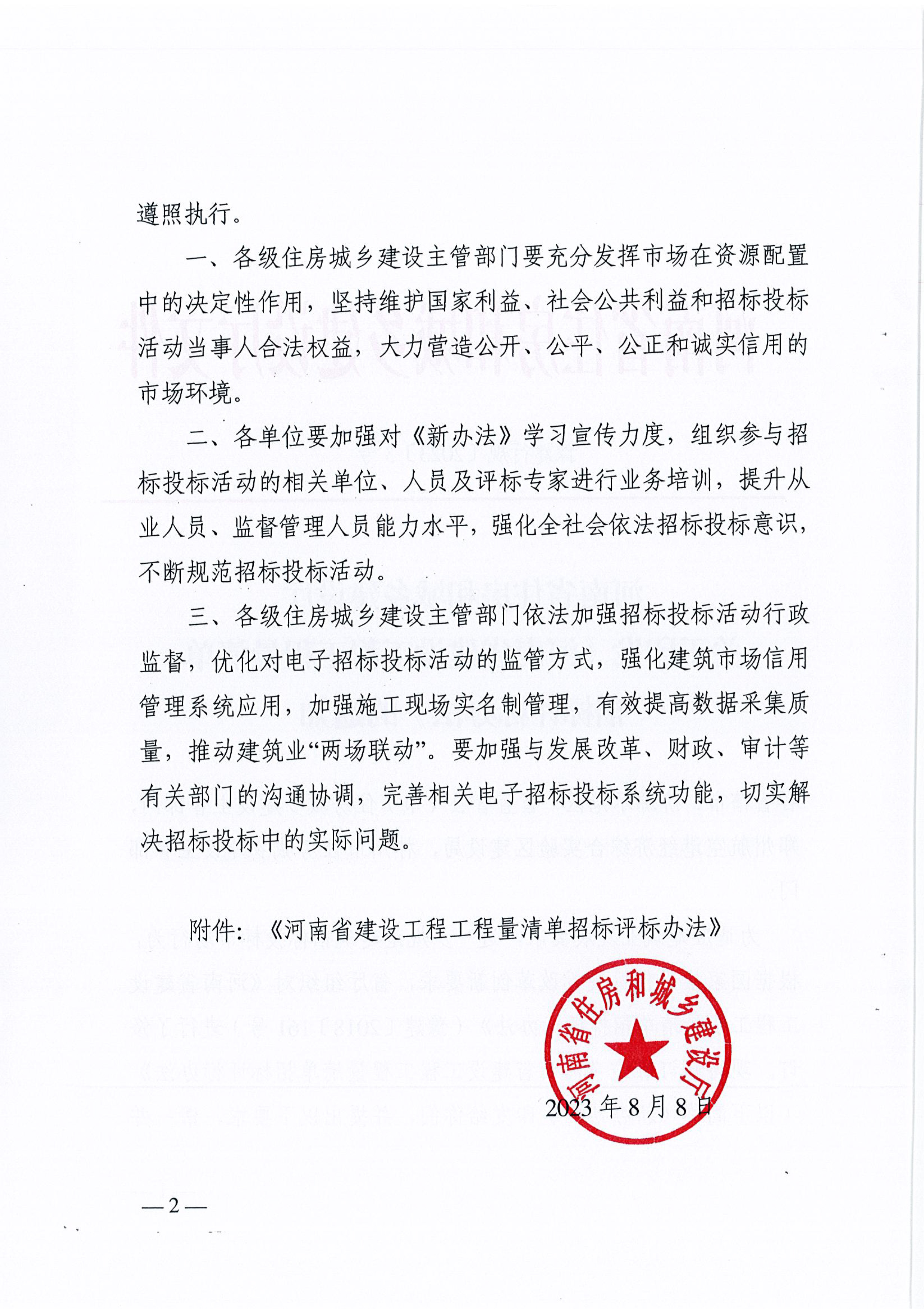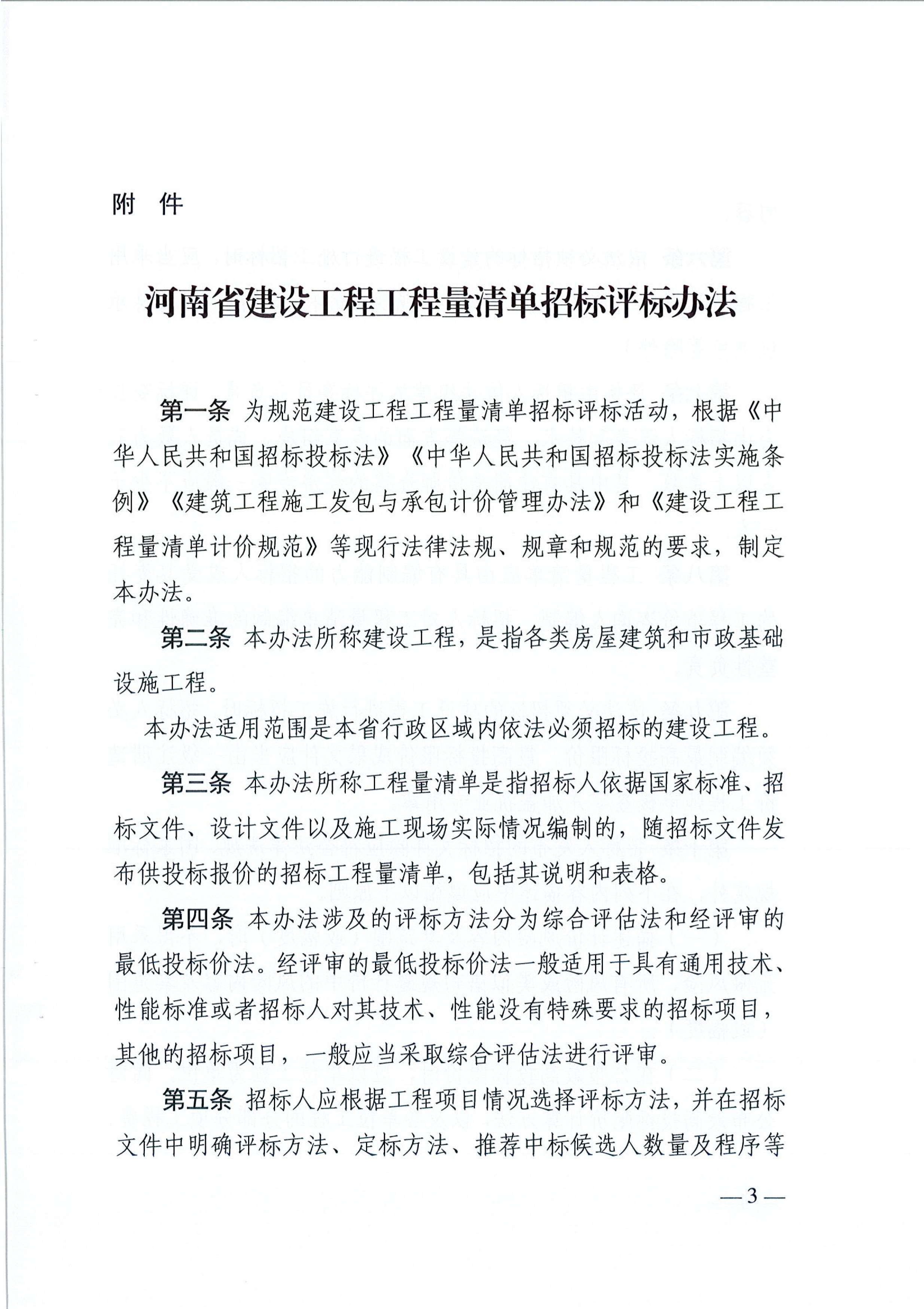 河南省住房和城乡建设厅关于印发《河南省建设工程工程量清单招标评标办法》的通知 发布时间:2024-11-27 16:51:29 浏览量: 30 上一篇:评标委员会和评标方法暂行规定2024-11-27 下一篇:河南省水利厅 河南省发展改革委 河南省财政厅关于印发《河南省水权交易管理办法(试行)》的通知2024-11-27