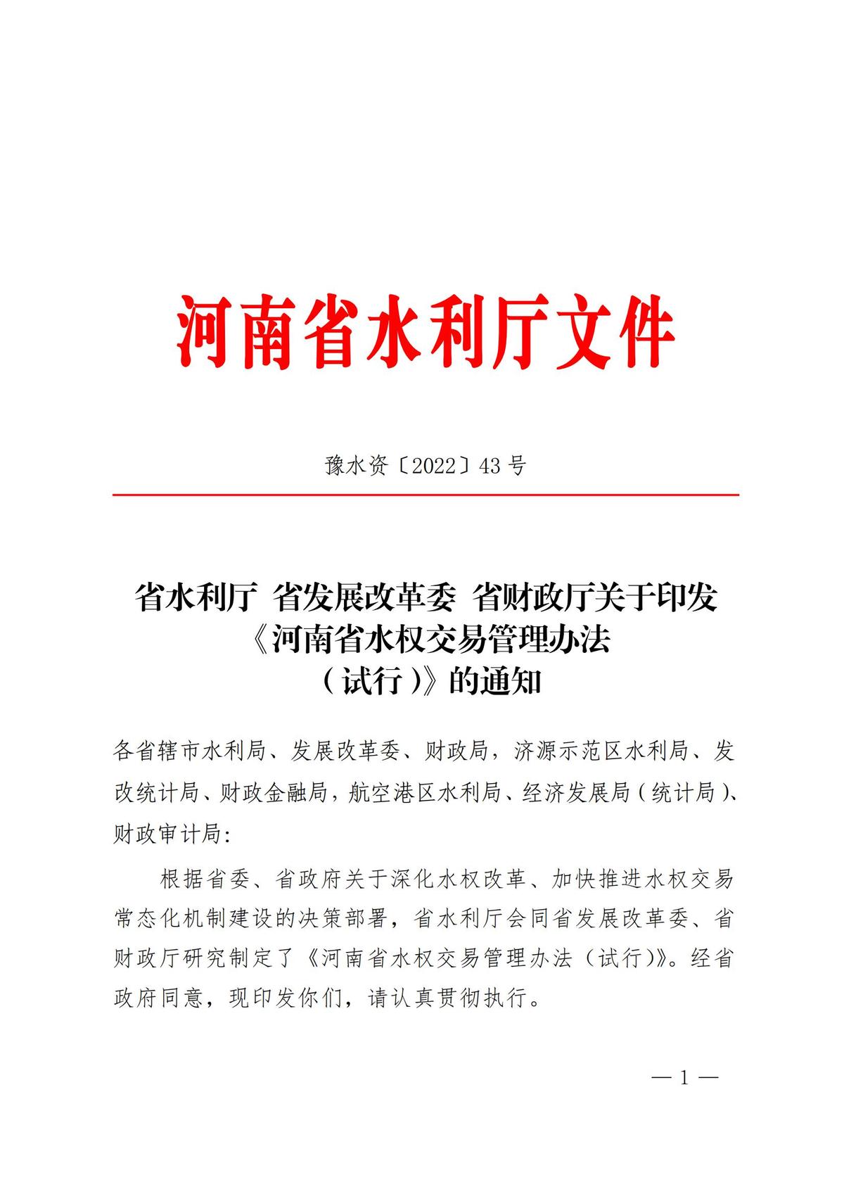 河南省水利厅 河南省发展改革委 河南省财政厅关于印发《河南省水权交易管理办法(试行)》的通知 发布时间:2024-09-25 00:00:00 浏览量: 10 上一篇:河南省住房和城乡建设厅关于印发《河南省建设工程工程量清单招标评标办法》的通知2024-09-25 下一篇:中华人民共和国爱国主义教育法2024-09-25